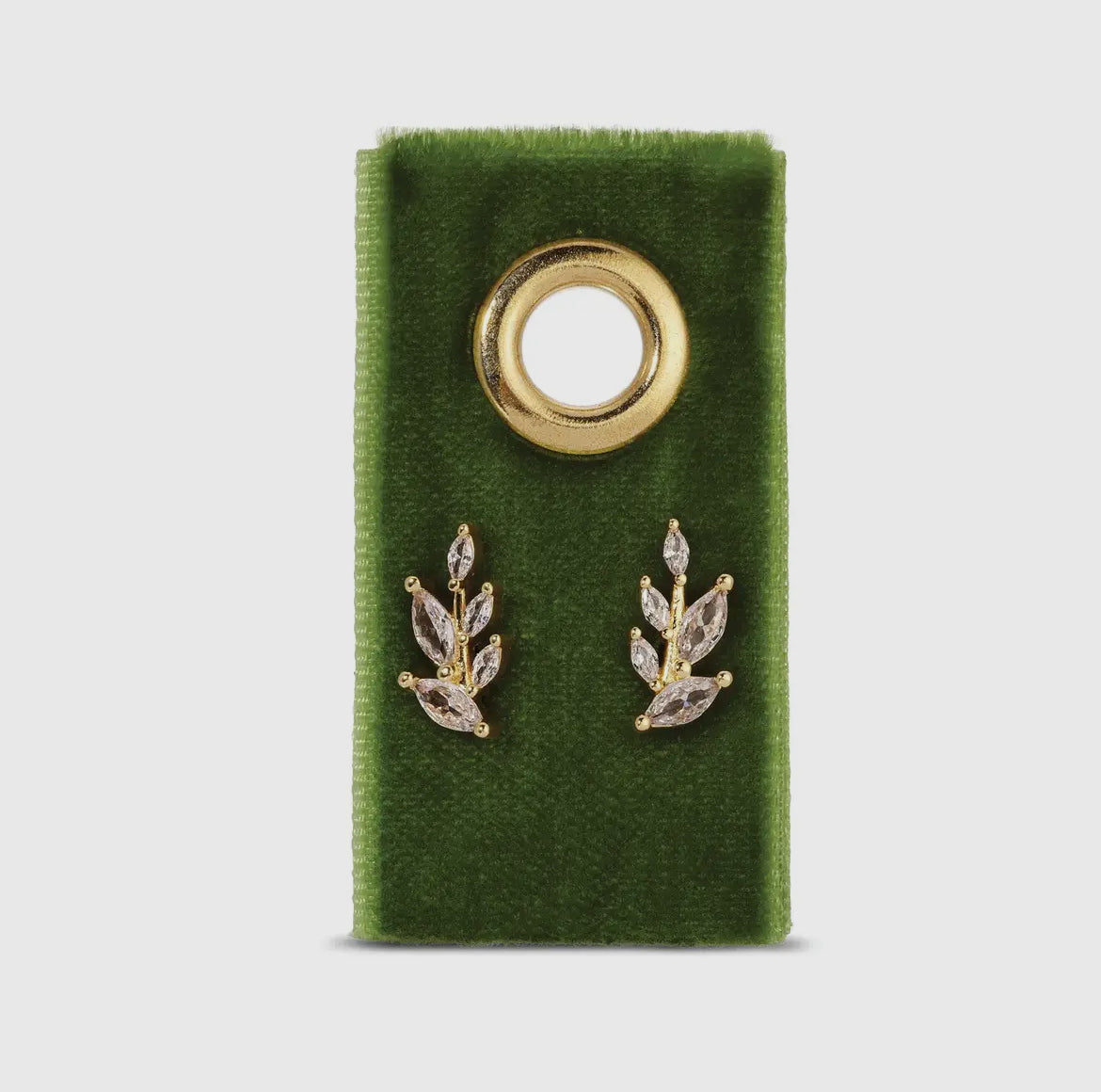 A sleek and modern design featuring sparkling crystal leaves set on a single curved stem. Perfect for everyday or special occasions!