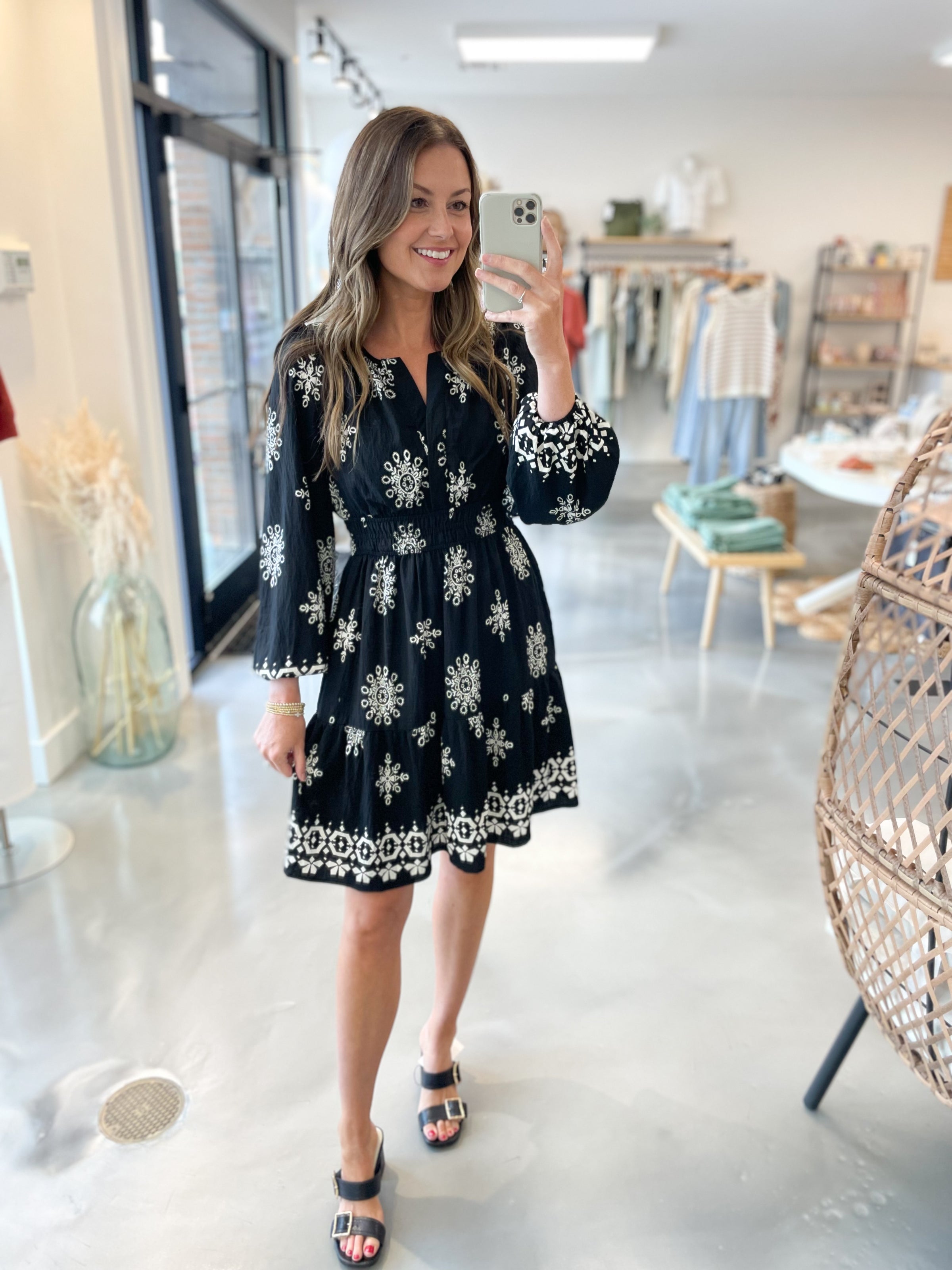 Freya Print Dress in Black