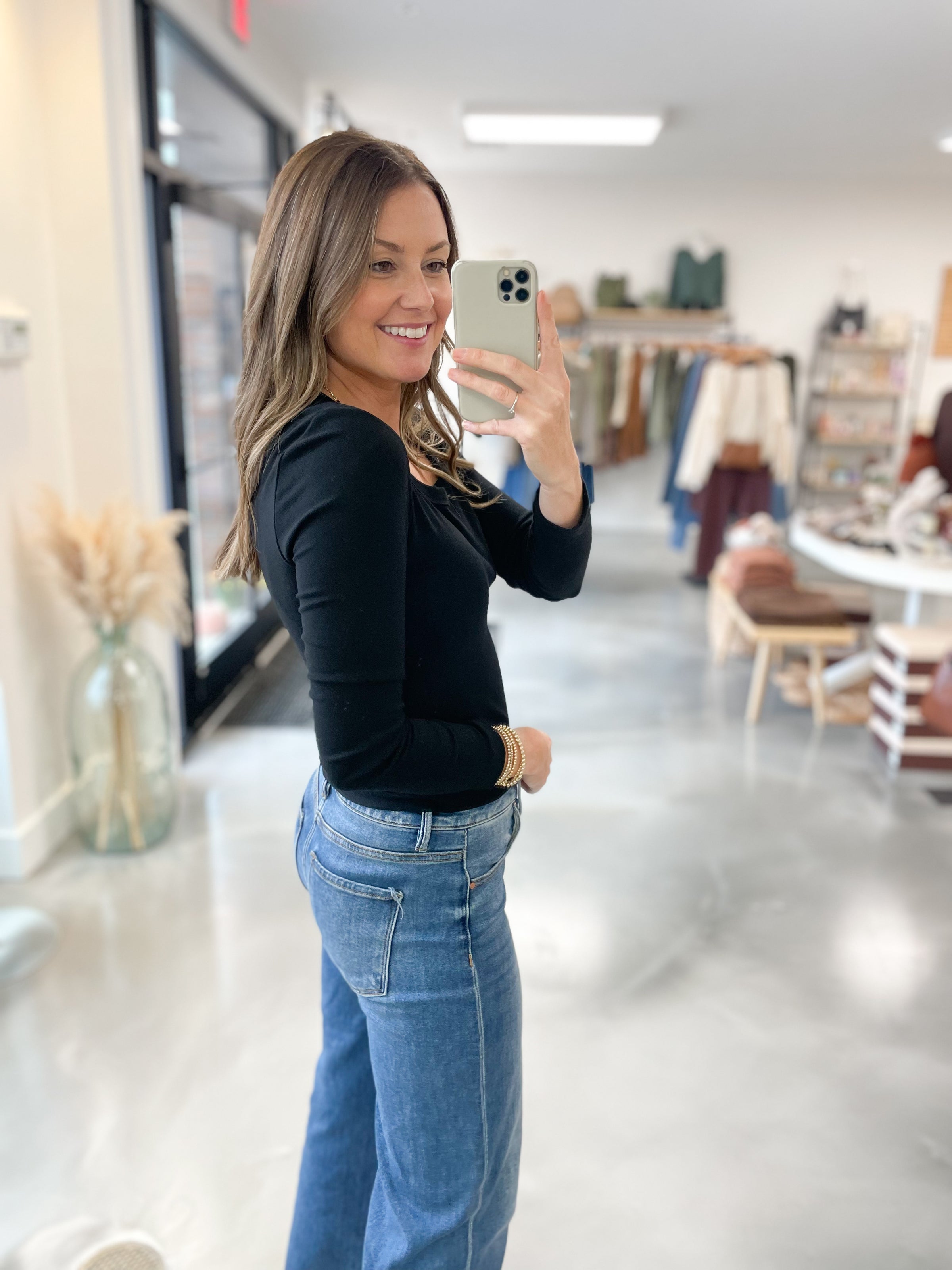 You just met your new everyday favorite! Super soft with plenty of stretch that makes this perfect for everyday wear. Features a semi-fitted body, fitted sleeves and scoop neck detail. You’re going to want this one in every color!