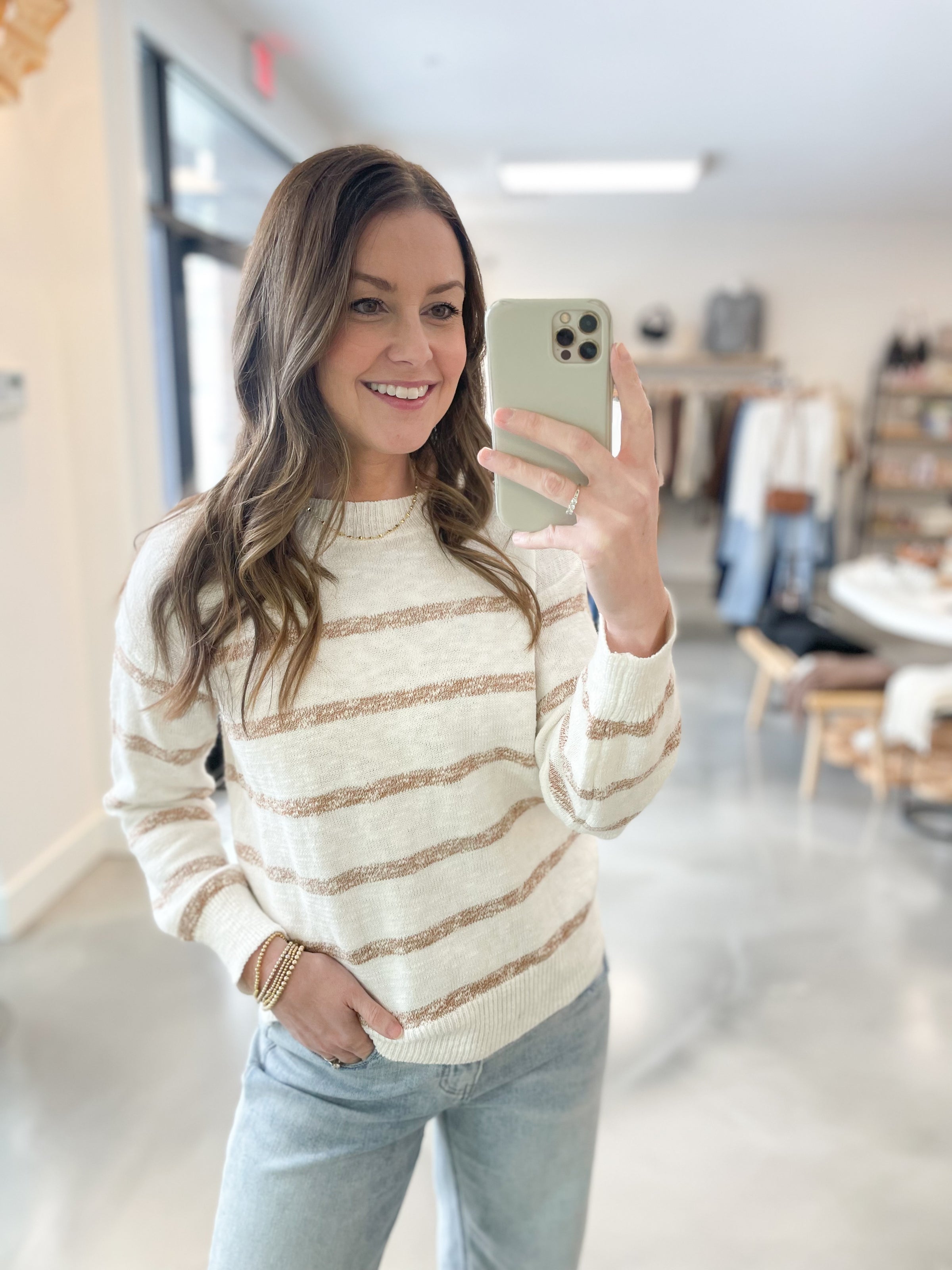 Coastal Stripe Sweater in Sand