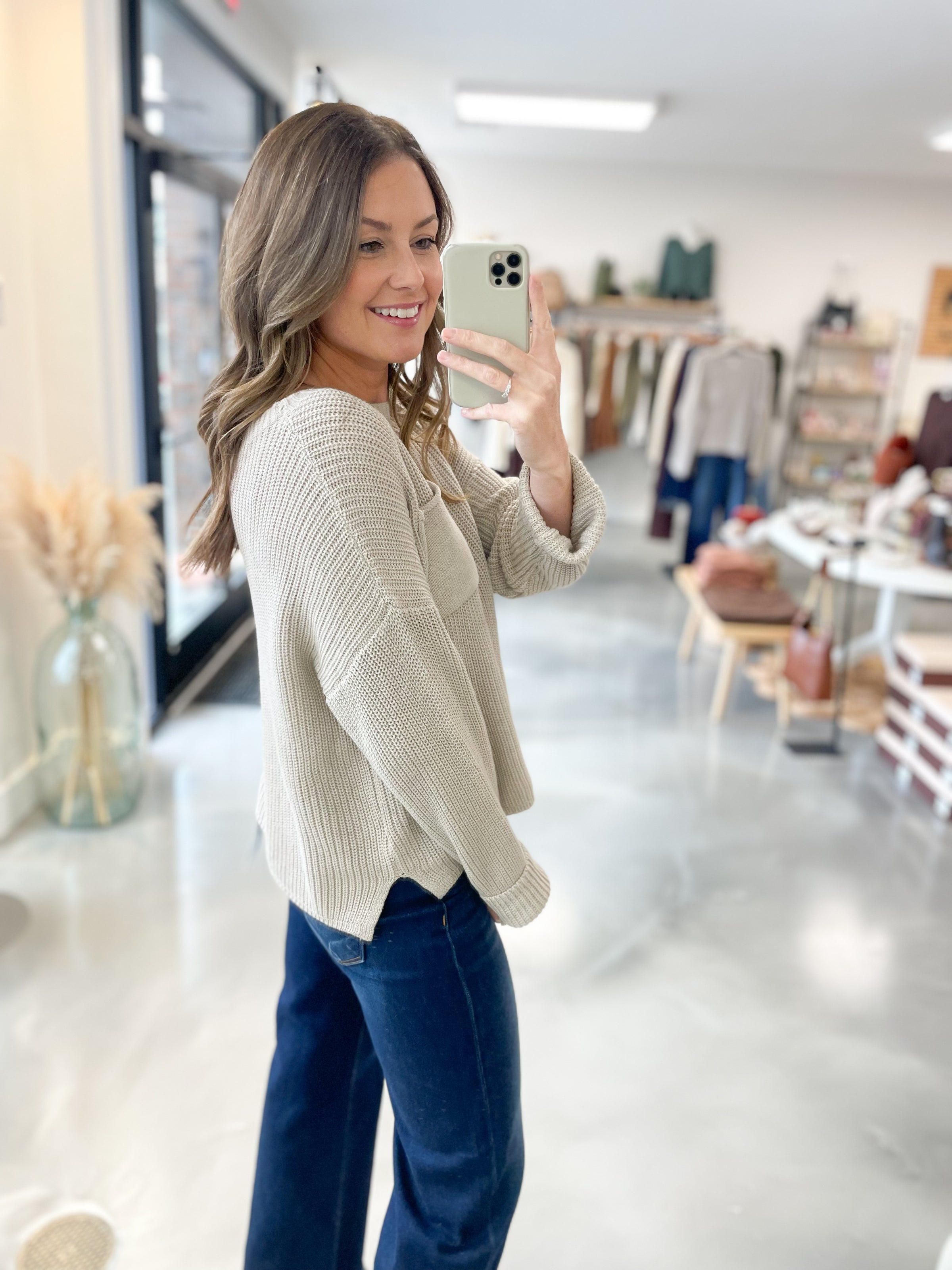 Cozy Pocket Sweater in Taupe