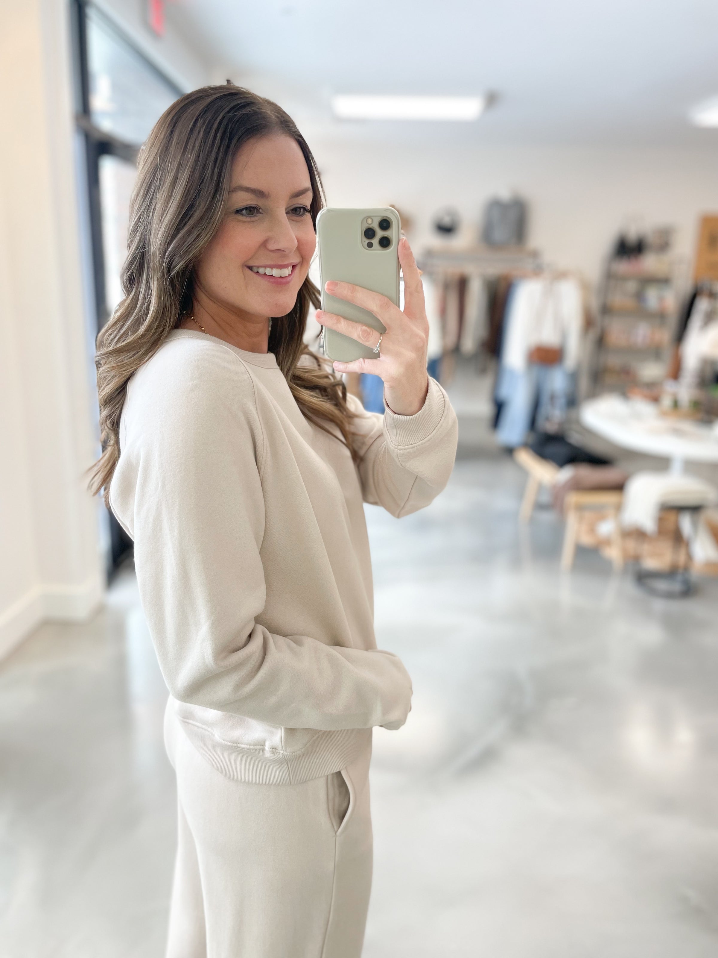 This garment-washed sweatshirt features a classic round neckline, relaxed raglan sleeves, and a boxy, easygoing fit for that perfectly effortless look. Soft with a lived-in feel, it’s designed for all-day comfort while still feeling styled and intentional. An everyday staple you’ll reach for whether you’re lounging, layering, or heading out the door.