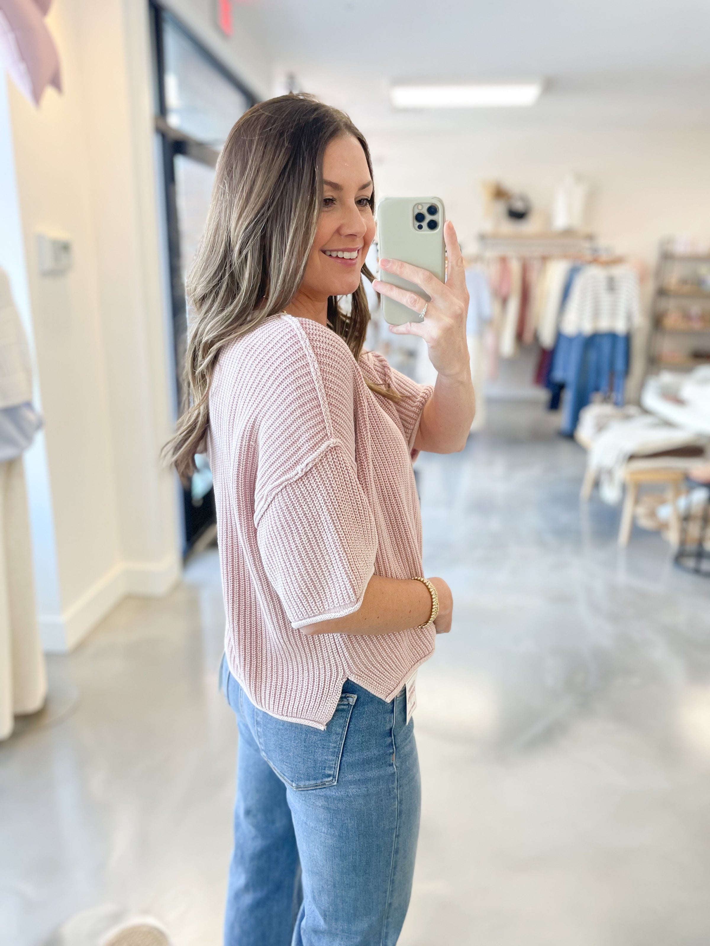 Laid-back with a lived-in feel, this vintage wash oversized knit sweater tee is the definition of effortless cool. Designed with a relaxed, slouchy fit and that perfectly faded, worn-in finish, it feels like a thrifted treasure you’ve loved for years. The lightweight knit gives you breathable comfort with just enough structure, making it easy to front tuck, half tuck, or wear loose and flowy. Casual, comfy, and endlessly versatile — it’s the throw-on-and-go piece your everyday wardrobe’s been waiting for.