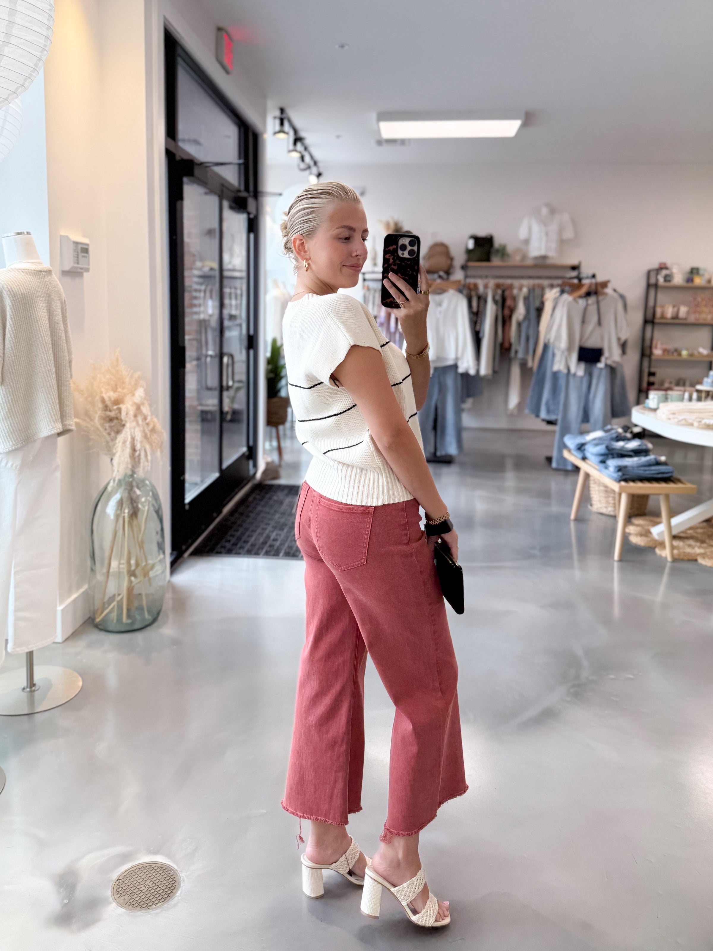 Straight leg fit in an acid wash denim that has plenty of stretch! Features a button and zip fly closure, raw hem, and back pockets.