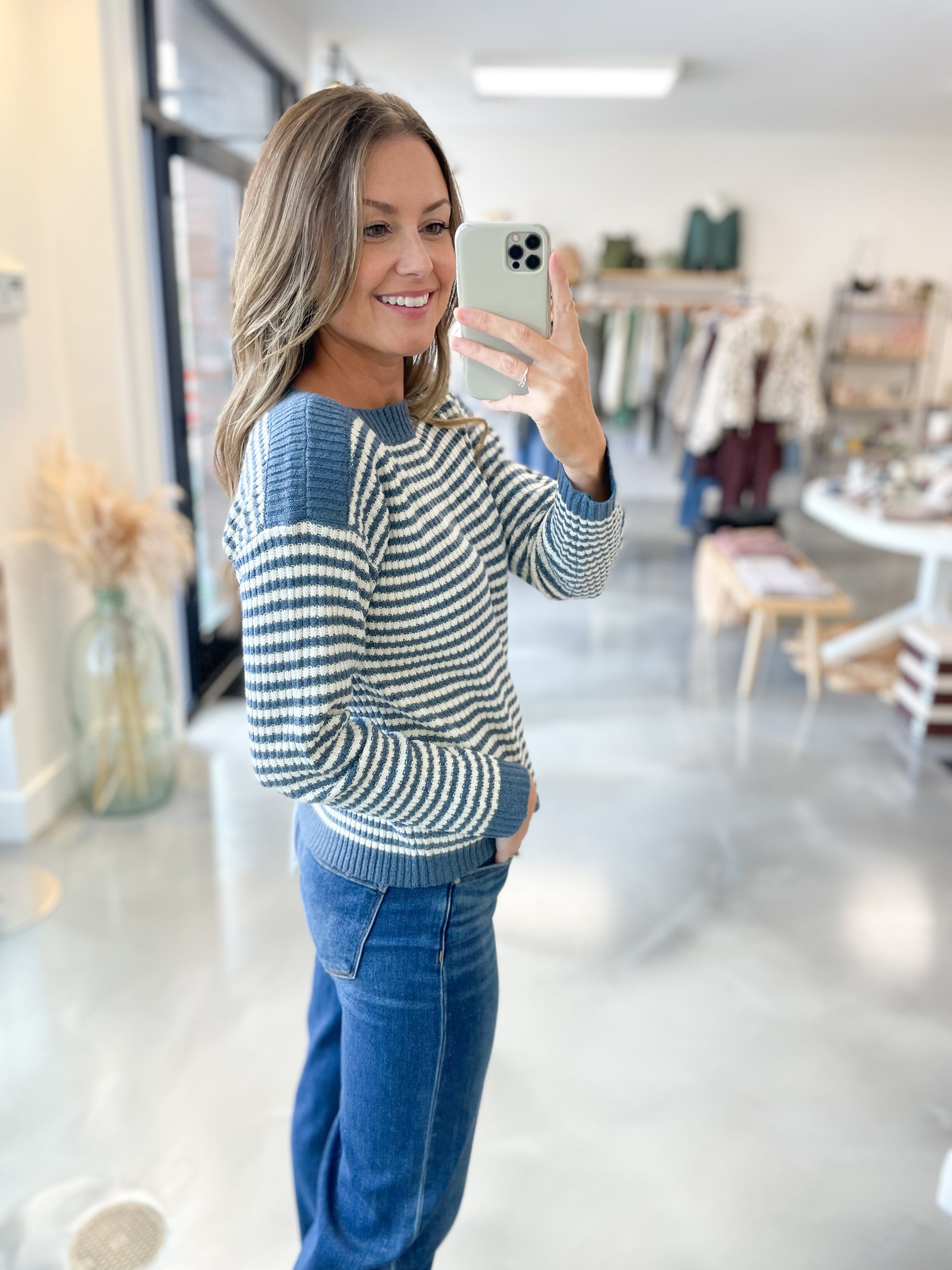 Classic with a modern twist, this striped sweater features a timeless boatneck cut and bold color block detail at the shoulders for an elevated touch. The easy, relaxed fit makes it perfect for everyday wear—pair it with denim for a laid-back look or style with trousers for something more polished.